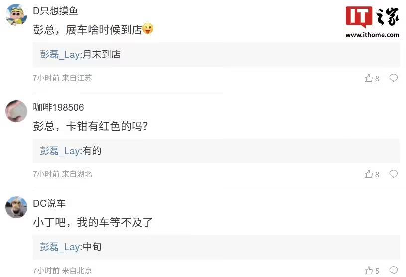IT之家注意到,华为智选车产品总监(享界系列)彭磊今日在微博回复了部分网友提出的问题:针对享界 S9T 展车何时到店,他回复“月末到店”;针对新车是否拥有红色卡钳,他表示“有的”;针对新车何时小定,他称“中旬”(结合上月他与网友的互动来看,预计小定时间为本月中旬)。