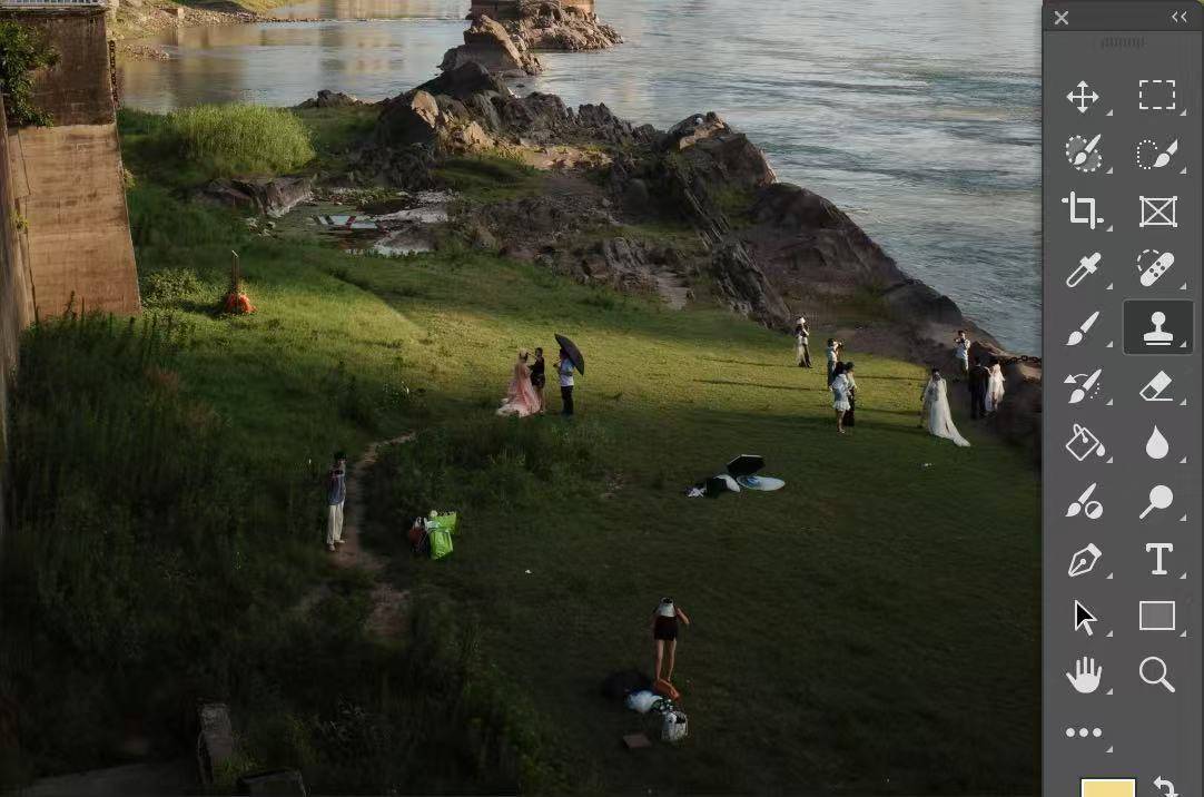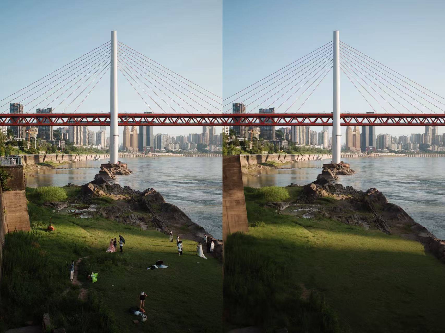 尤其令人称赞的是,AI 在清除人物的同时,还细致地保留了右侧江岸岩石的阴影细节,没有出现常见的粗糙涂抹痕迹,整体效果令人非常满意。