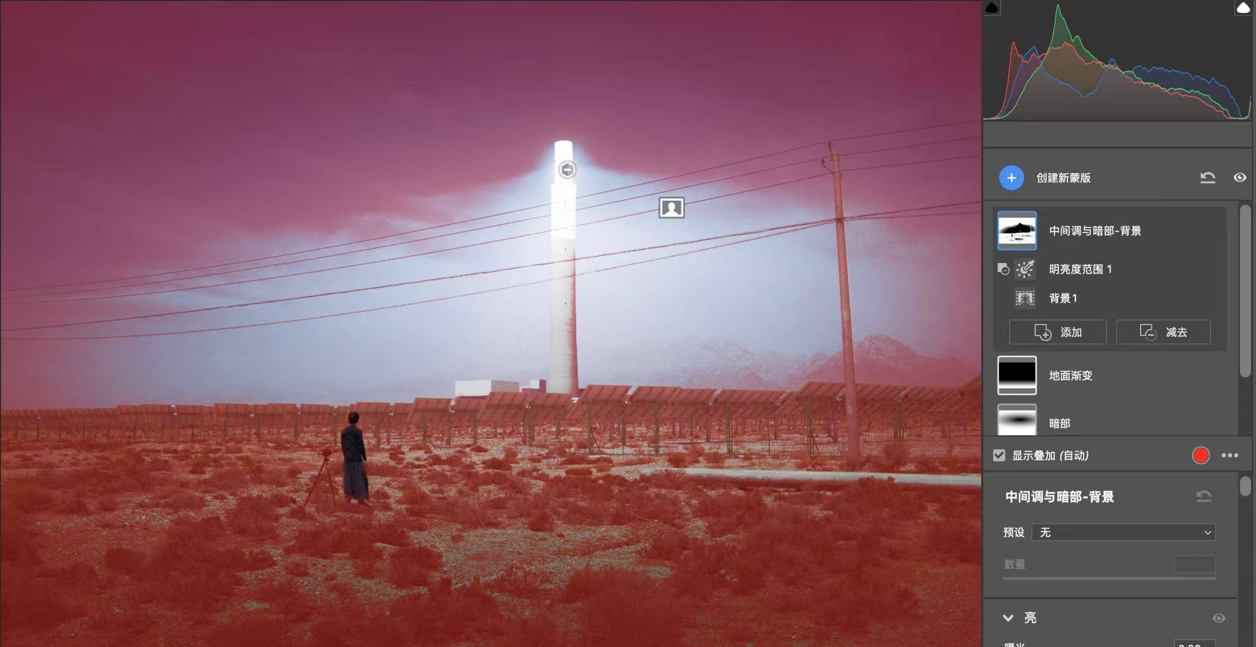 可如果运气不好,拍到一张天空惨白的照片,后期处理起来就相当麻烦——需要创建复杂的蒙版,把天空和地面分开,单独进行调整。