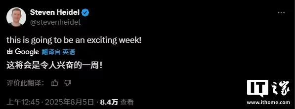 IT之家 8 月 5 日消息,OpenAI 工程师 Steven Heidel 今日凌晨发文称,本周“将会是令人兴奋的一周!”。