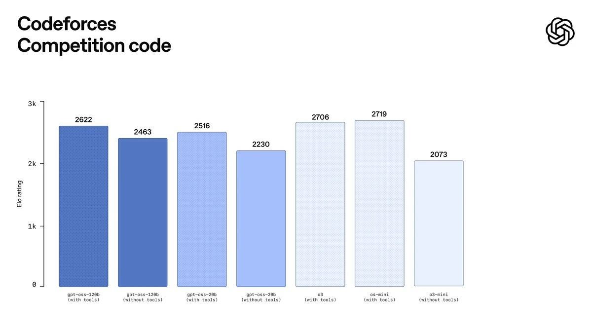 此外,OpenAI 表示,这两款开源模型具备良好的安全性,经过强化学习与对抗性微调,符合与专有模型同等级的安全标准。