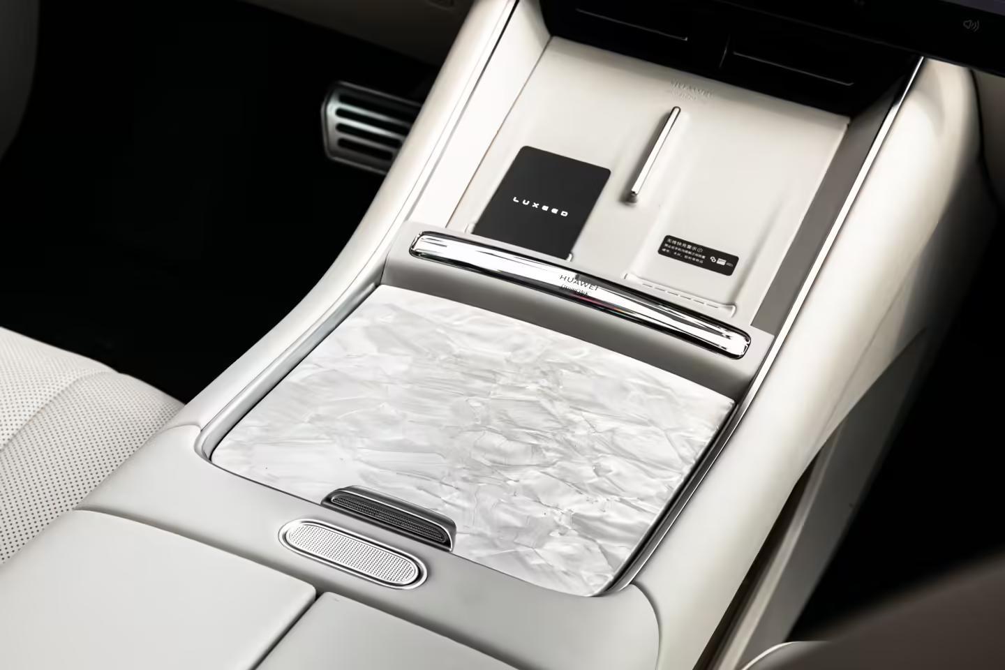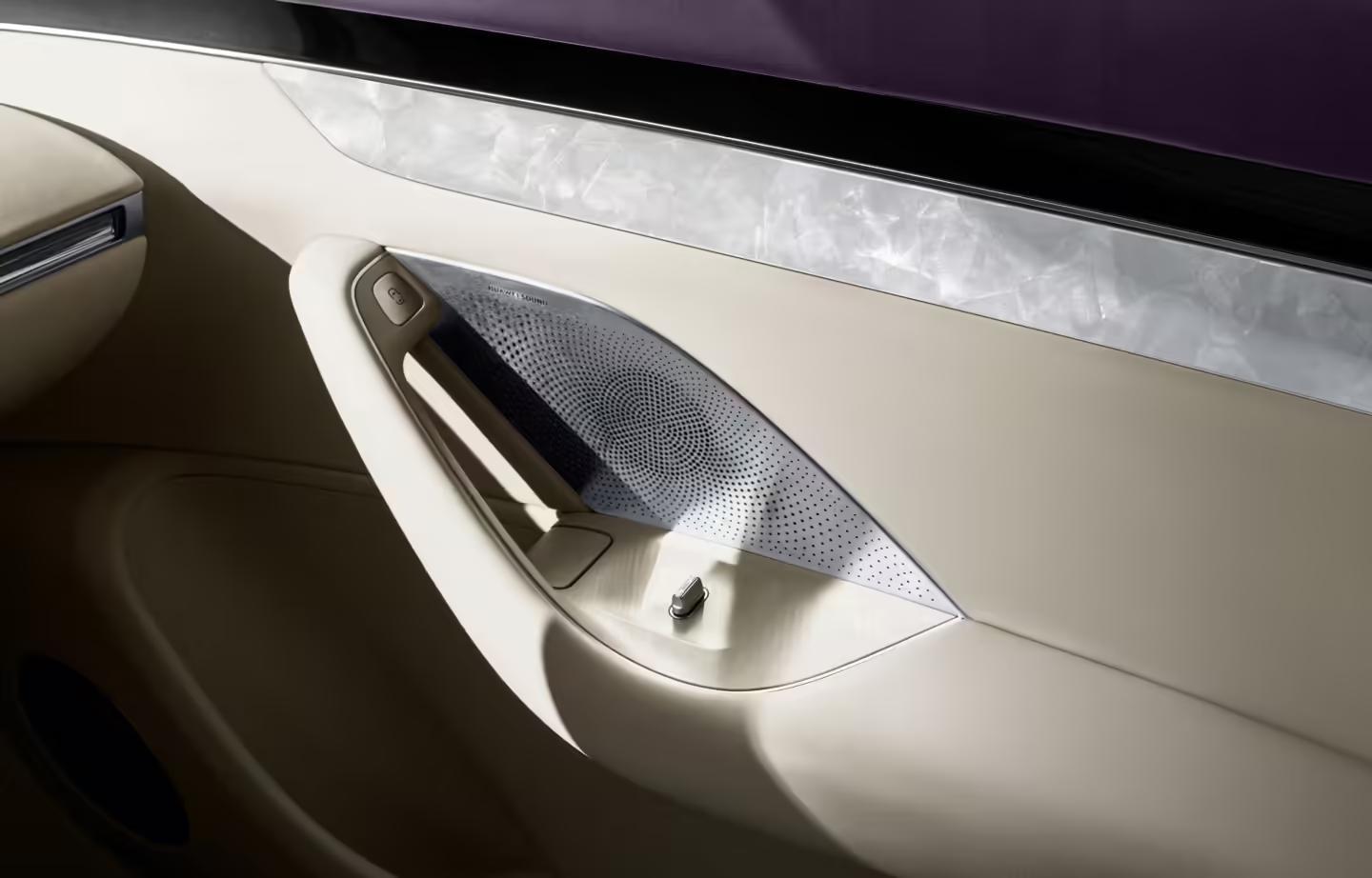 这款内饰配色采用紫、白双色搭配,并实现行业首发车规级“凝光贝母”工艺及“洛可可美学”上车。官图显示,新车在中央扶手的储物箱表面、车窗按钮等位置运用了新的材质或纹理。