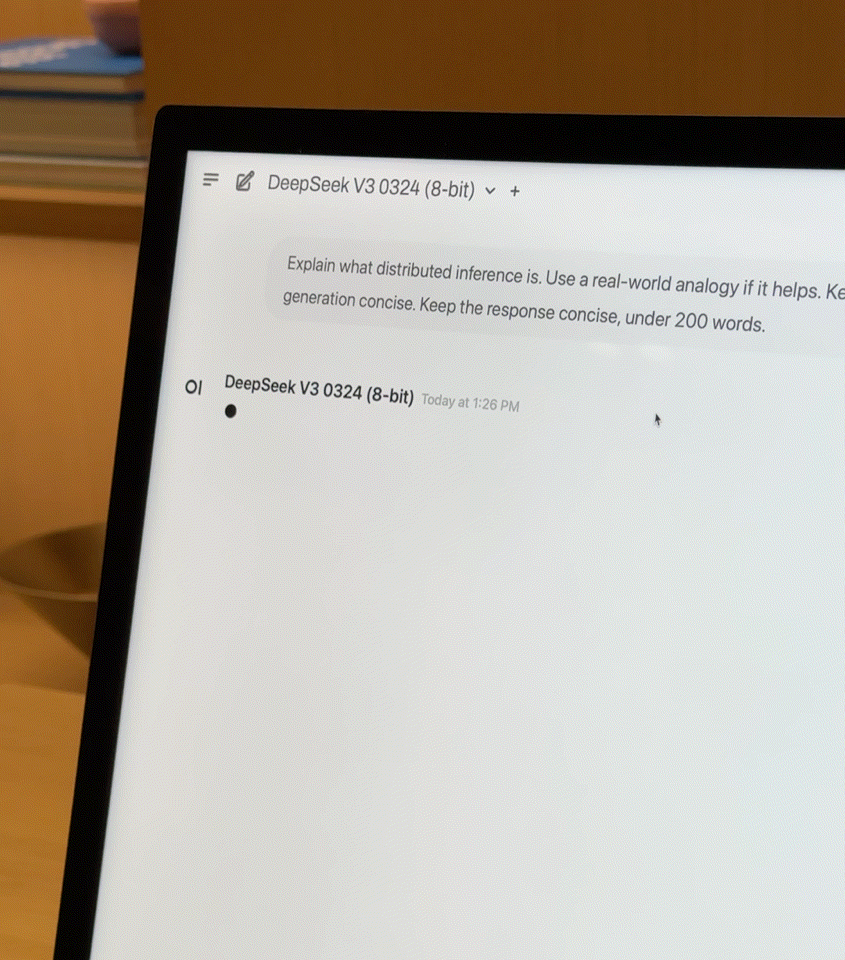 去年 7 月,他们启动了第一次实验,用两台 MacBook Pro 成功串联跑通了 LLaMA 模型。虽然性能有限,每秒只能输出 3 个 token,但已经足以验证 Apple Silicon 架构用于 AI 分布式推理的可行性。