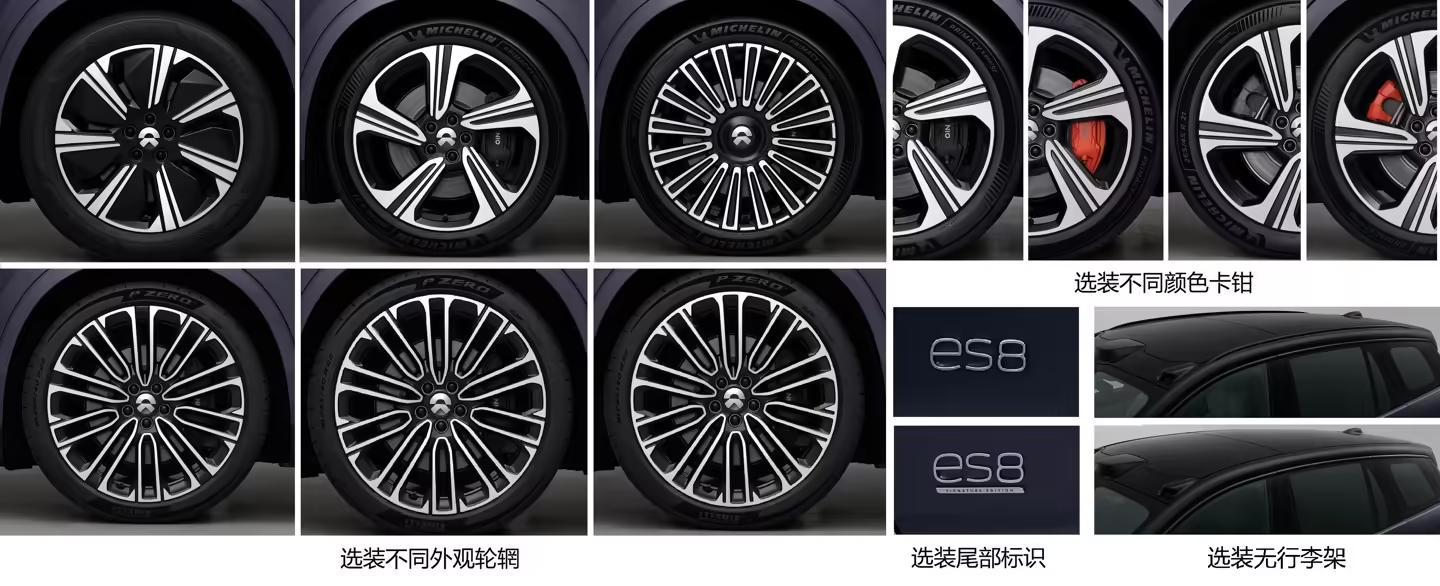 在选装配件方面,全新蔚来 ES8 提供了丰富的个性化选择。消费者可以根据自己的喜好选装不同样式的轮辋、红色刹车卡钳以及车顶行李架等。此外,新车还加入了大容量前备箱,车内布局提供六座和七座两种选择,以满足不同用户的需求。