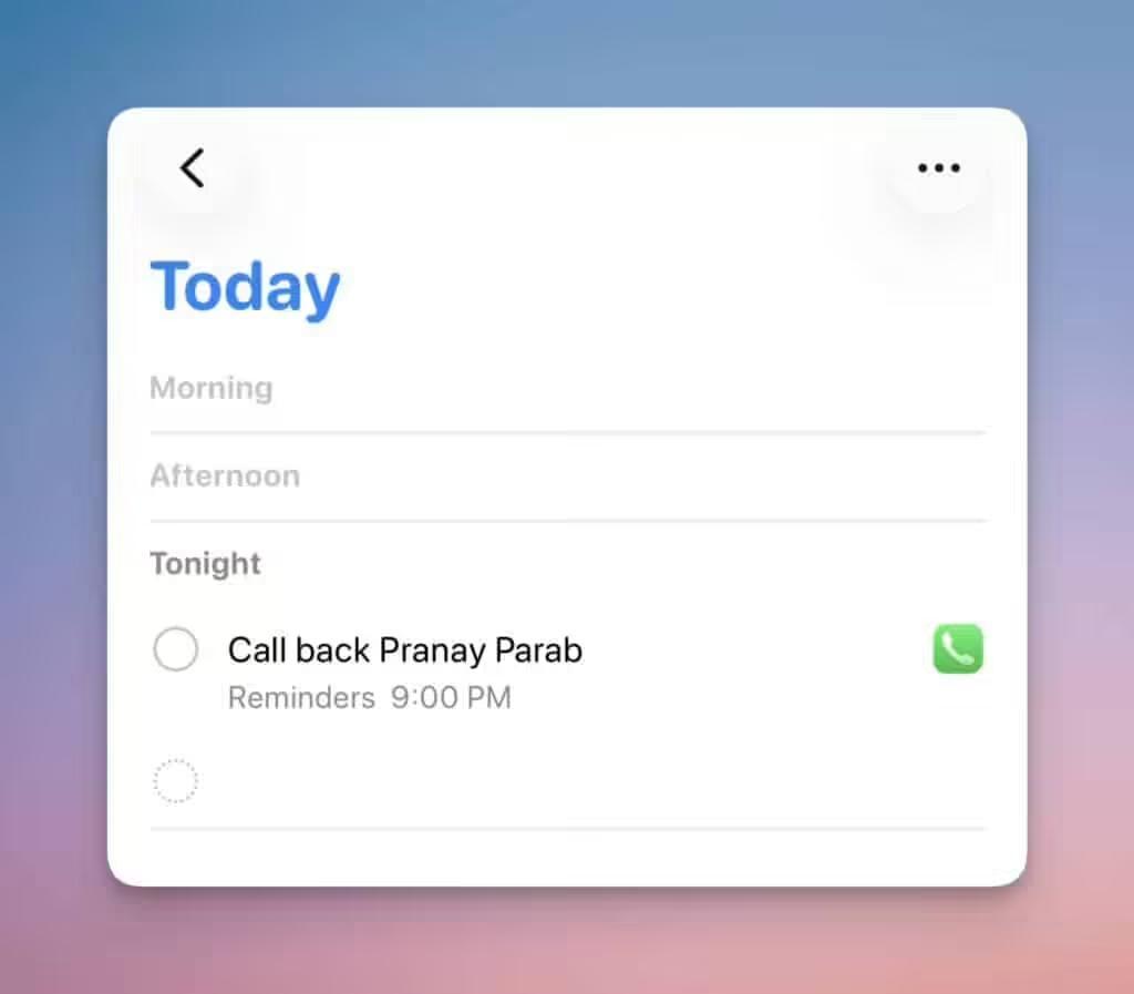 此外,当用户添加回电提醒后,相关的事项还会自动添加进“提醒事项”App 的“今天”标签页中,自动添加的提醒还内建有快速拨号的按钮,可直接在推送通知 / 提醒事项 App 中回拨电话。