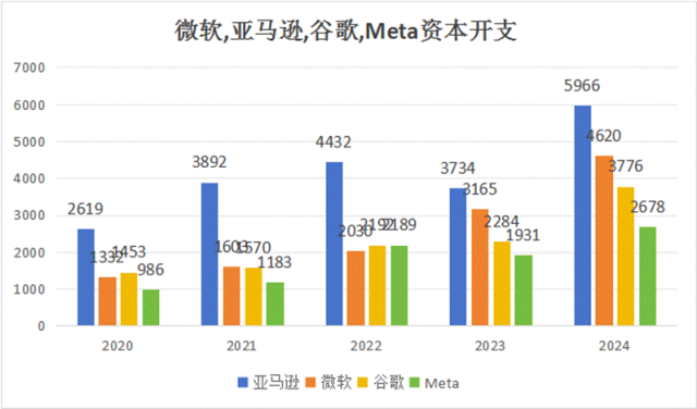 说出来你可能不信,Meta甚至不是过去5年美国科技巨头中资本开支最高的: