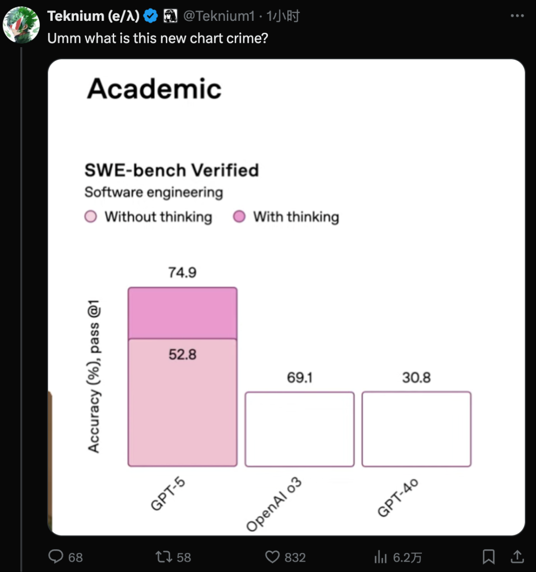 在发布会的第一组演示中,OpenAI 就被人发现在模型跑分的图表上「动了手脚」: