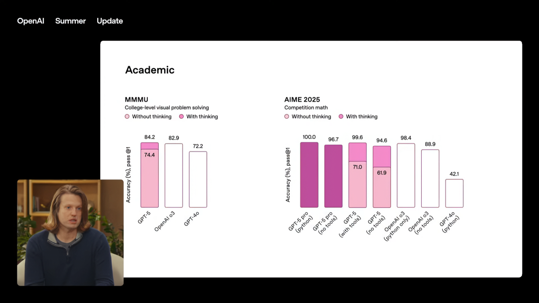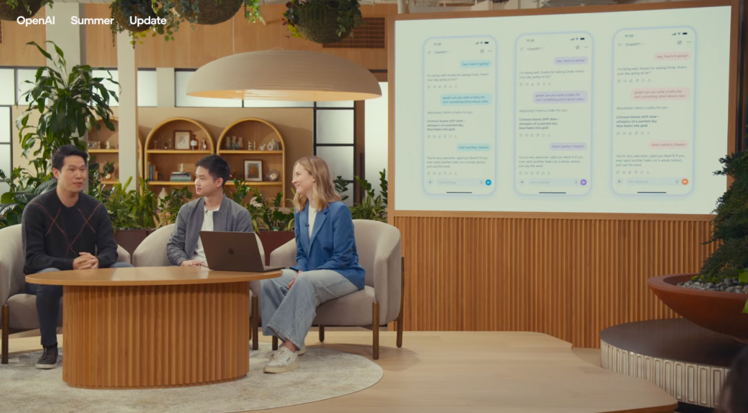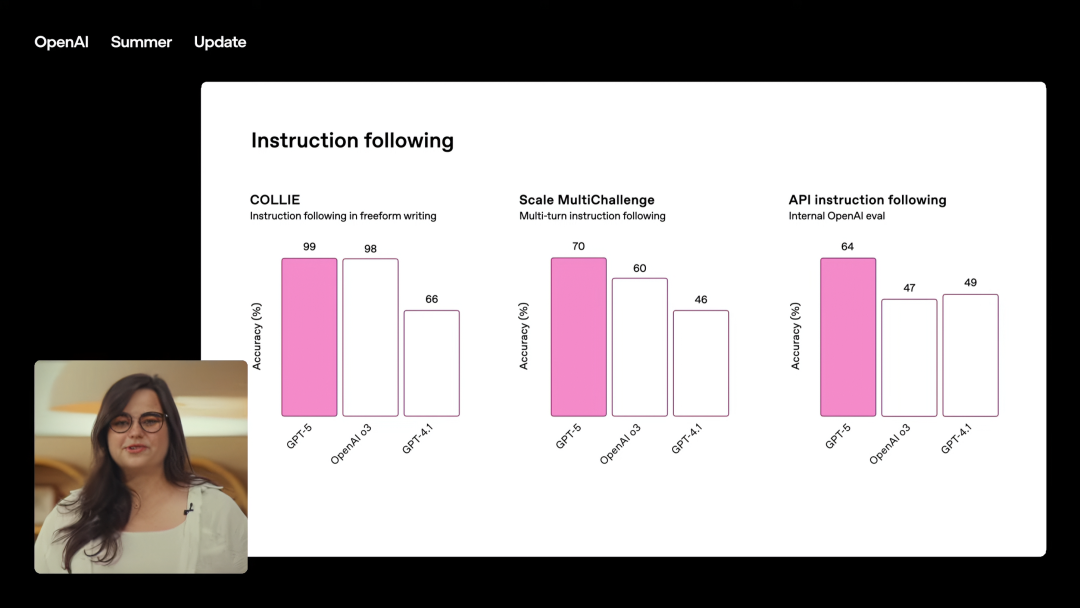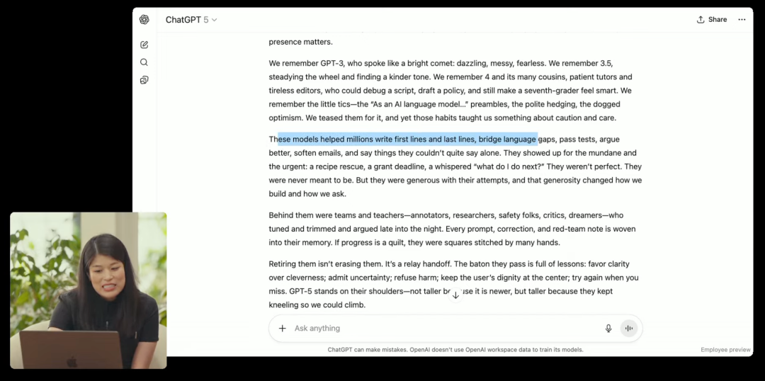 更加自然和智能,现场展示环节GPT-5的语音模型几乎和真人无异。