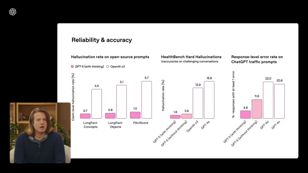 GPT-5的准确性得到了史诗级别的提升,几乎可以说一句「告别模型幻觉,从GPT-5开始」。