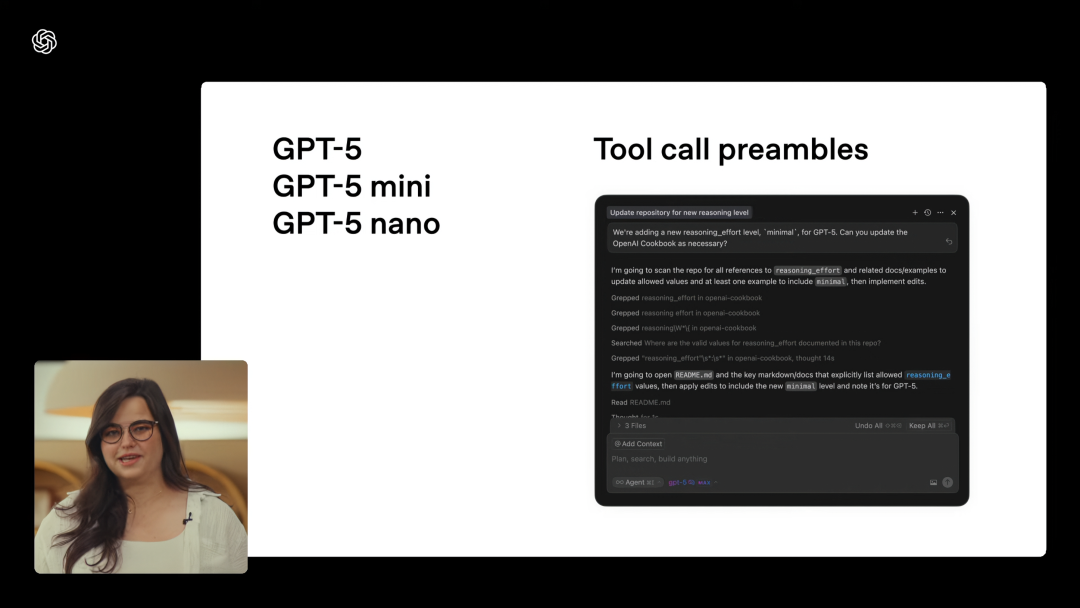 并且还有更多的功能,比如新的「精简」推理模式、自定义工具、结构化输出的更改、工具调用前导内容、详细程度参数等。