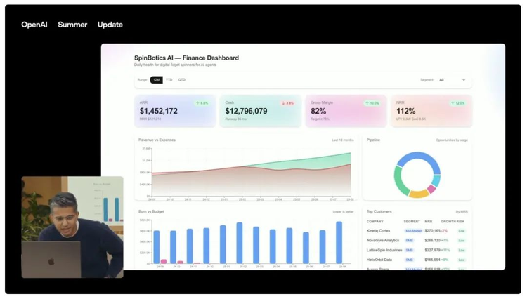 新模型的案例演示、再次被刷新的Benchmark、被打下来的API价格,几乎构成了这场发布会的全部。但不同的是,在最后三分一,OpenAI加入了一些并不那么炫酷的企业案例分享,展示了他们如何通过模型帮助企业构建自己的应用,同时增加了一个专门服务于企业的模型 GPT-5-chat:面向客服场景,延迟 <200 ms。