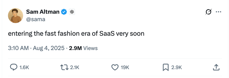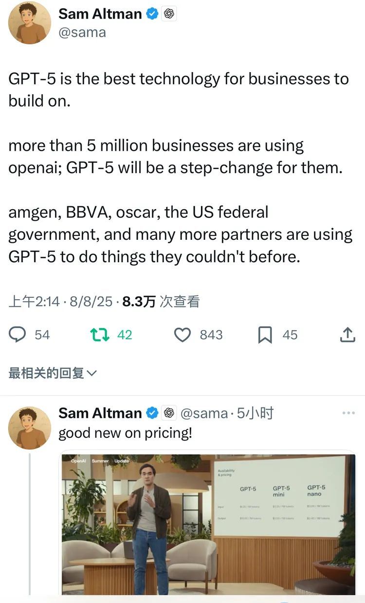结合Sam Altman此前在X上关于SaaS的预判,一旦企业能够基于GPT-5自主构建应用,传统SaaS模式确实面临冲击。