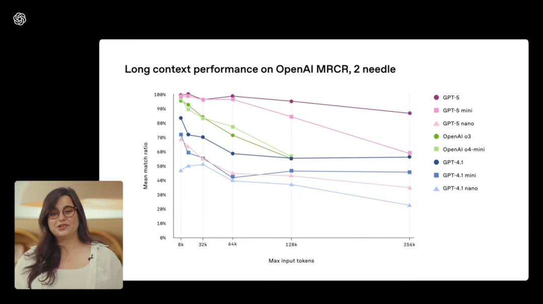 在OpenAI MRC上下文检索能力的基准上,GPT-5处于领先。