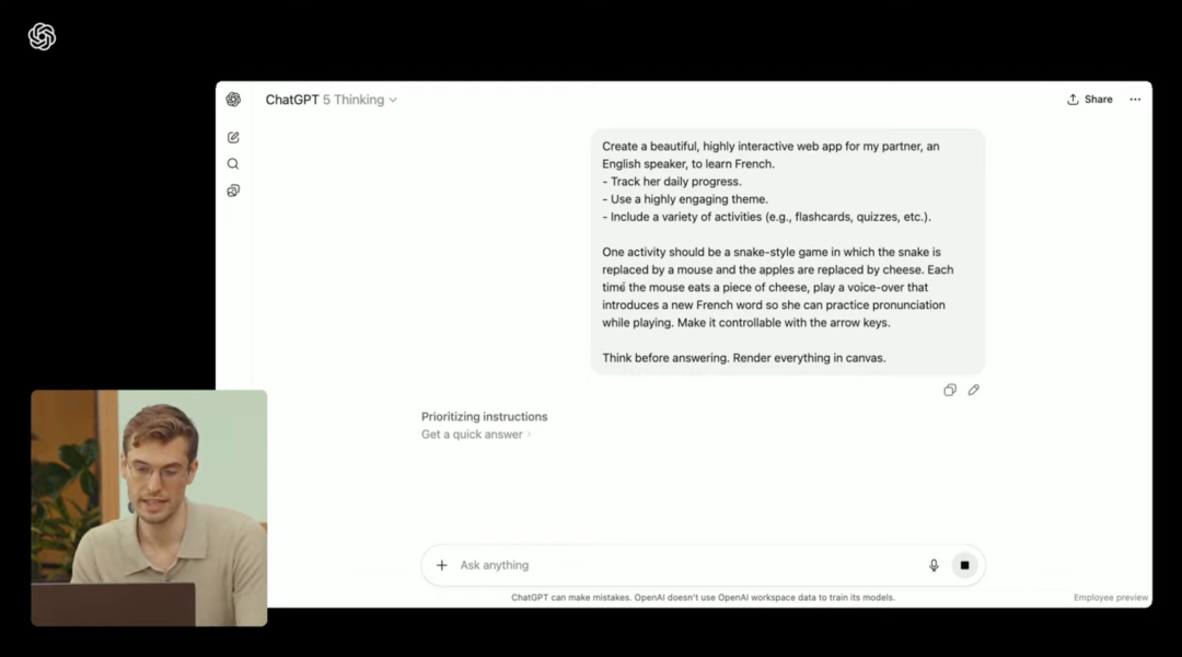 此外,王若宸演示了GPT-5的语音/语音学习功能。他是OpenAI多模态研究科学家,训练了ChatGPT的语音模型。