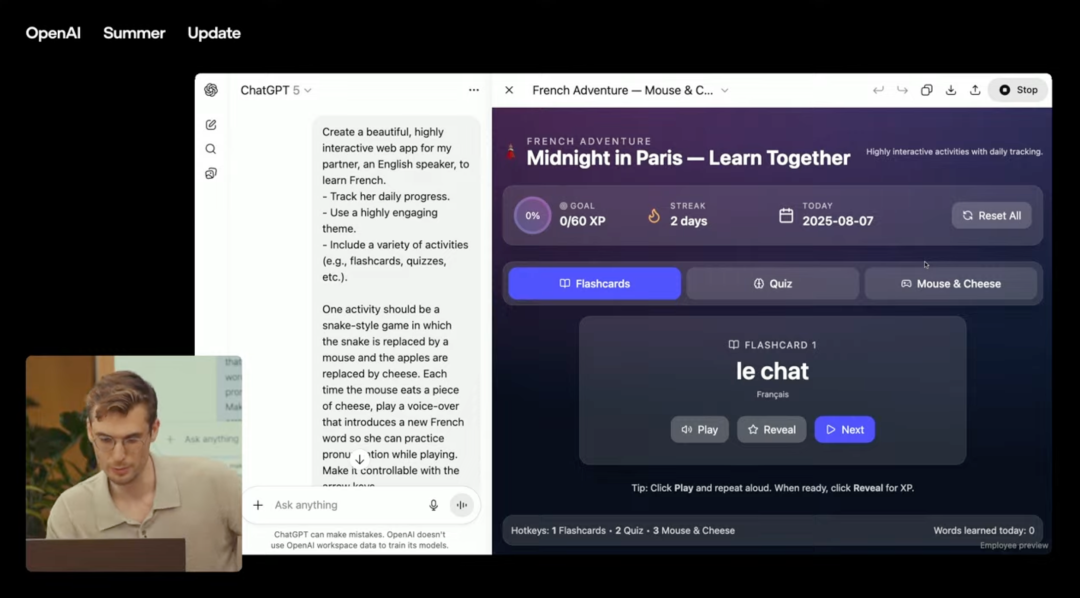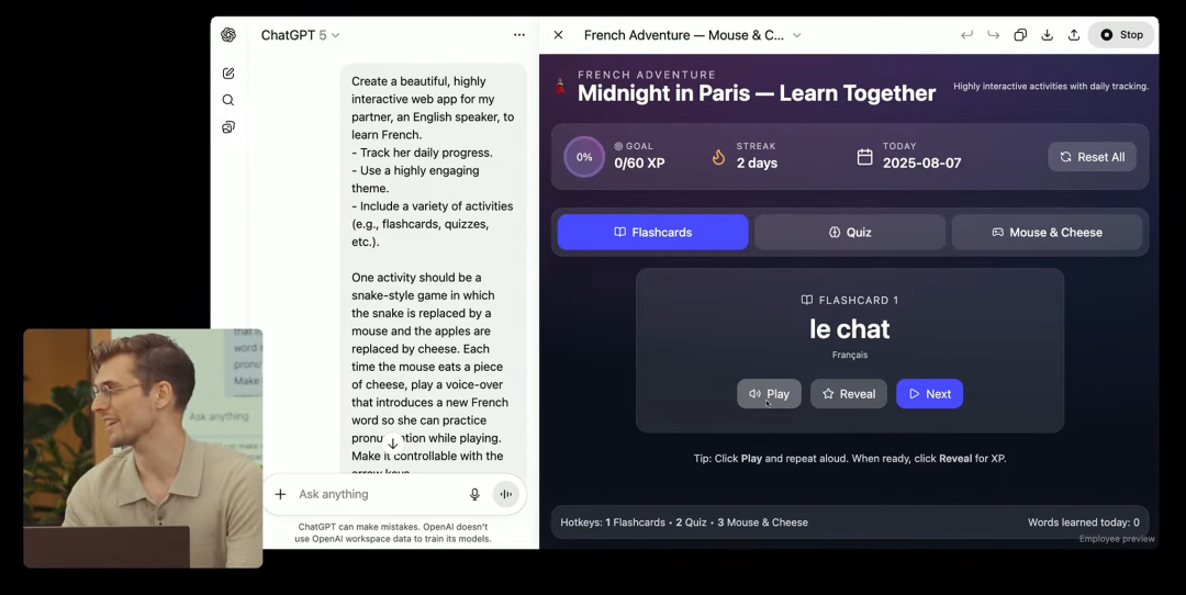 接下来,我们要求GPT-5做一个学法语的web应用程序。