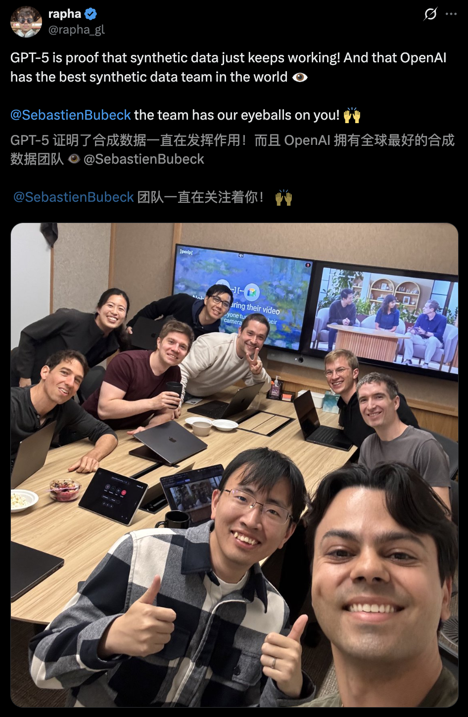 其中奥义,就在于最大限度利用上一代模型,由GPT-4o、o3等生成系统的教学内容,GPT-5则由此学会了推理、规划、分解任务的能力。