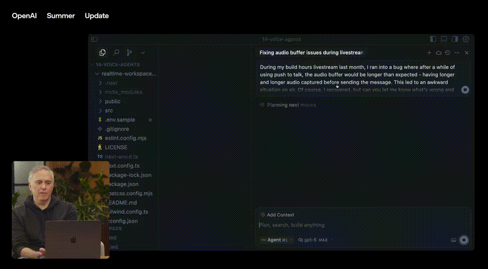 现场演示中,研究人员翻出了一个上个月直播demo的一个bug,GPT-4和o3都未能完成修复,今天直接扔给GPT-5。