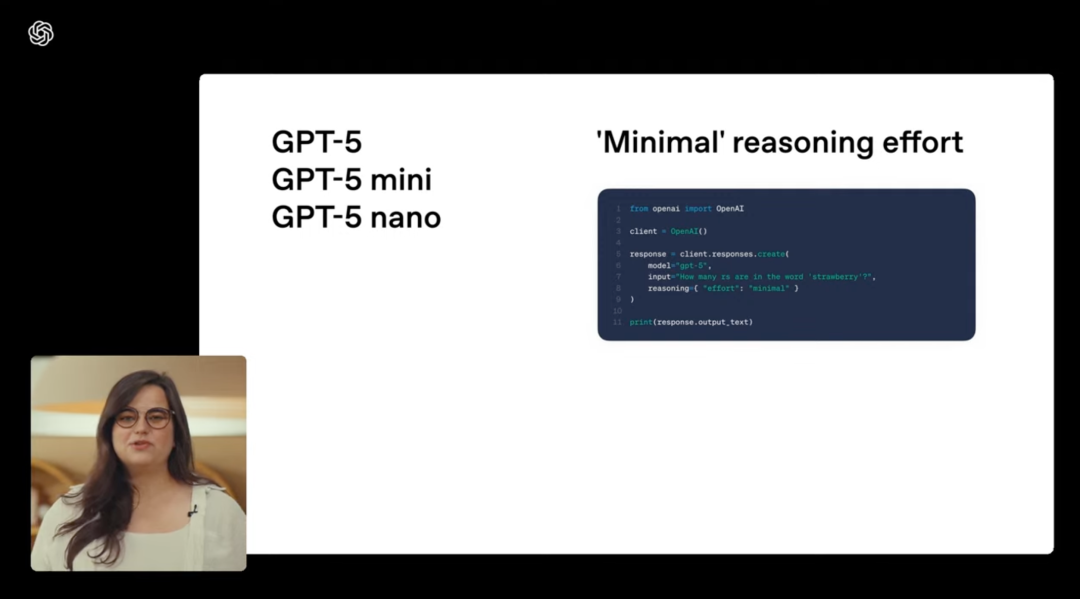 不仅如此,OpenAI还首次发布了名为「Minimal」推理强度的新参数,适用于速度快、对延迟敏感的应用。