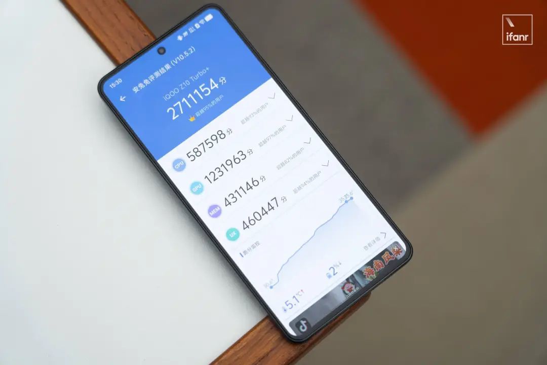 性能方面,iQOO Z10 Turbo+ 搭载天玑 9400+ 移动平台和 iQOO 自研电竞芯片 Q2 的双芯组合,常温环境下安兔兔跑分为 2711154。