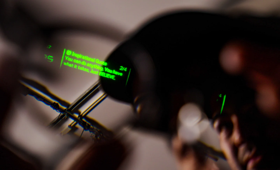 相反,眼镜会将您的信息和股票行情投射到“波导”中 – 在这种情况下,它是一种将光反射到您的视野中的特殊玻璃 – 与更传统的处方镜片粘合在一起。