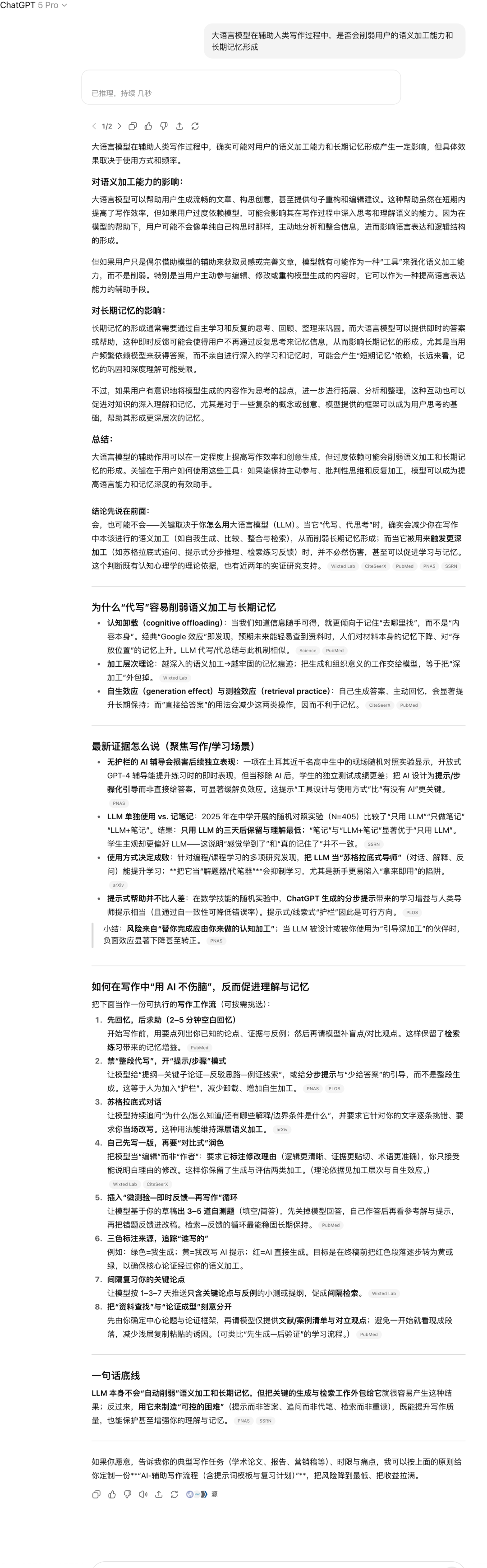 用 ChatGPT 越用越傻?这一点我始终心存顾虑,于是我把这个问题扔给了 GPT-5 系列中最智能的版本 GPT-5 Pro。有一说一,我感觉它更像是深度研究的「孪生版本」。