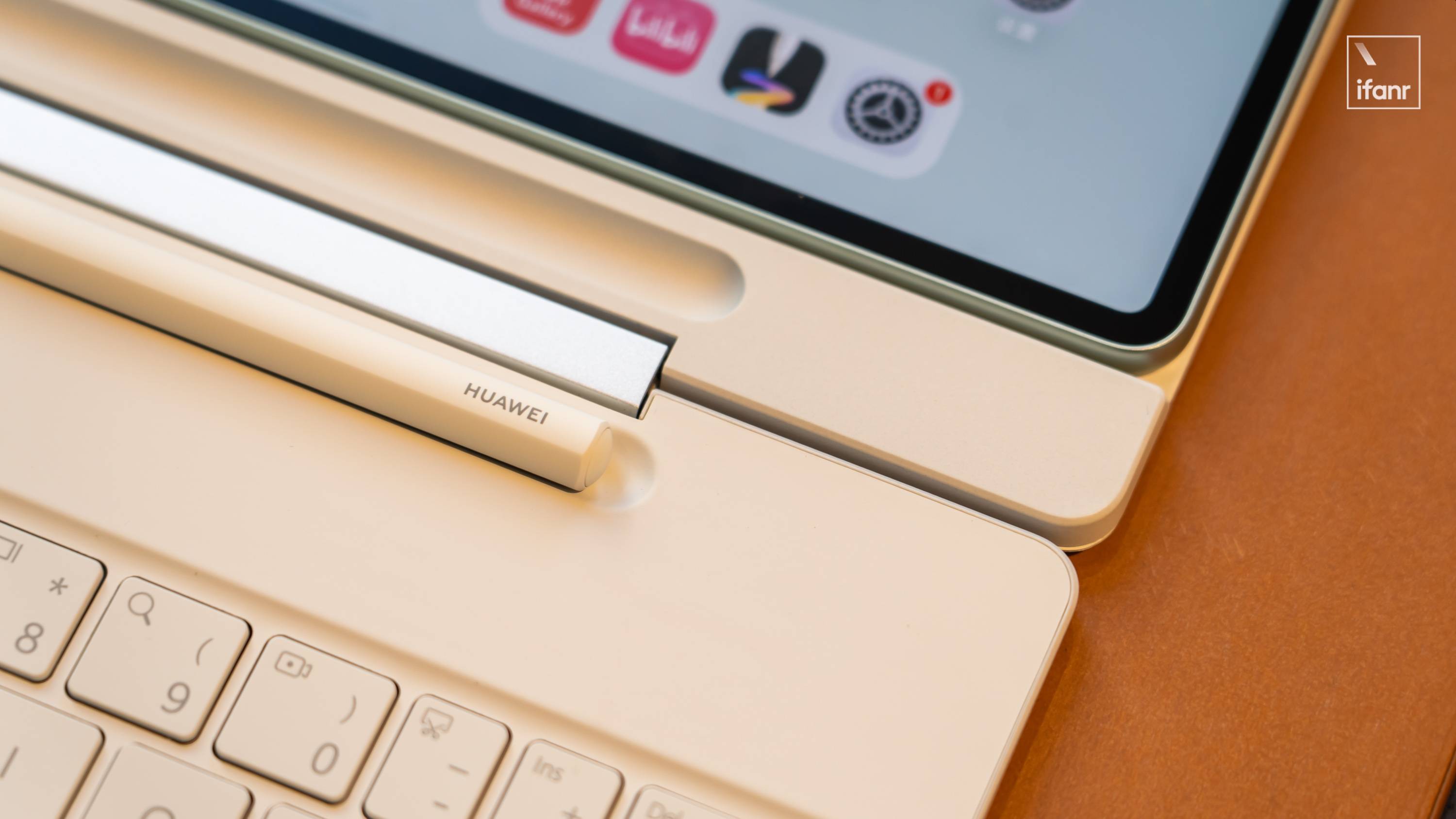 机身和这次一同推出的华为星跃键盘是透过磁吸固定,并采用 Nearlink 星闪技术进行连接,后盖和键盘之间没有外露的金属触点,这样能然两者的外观更加干净整洁。