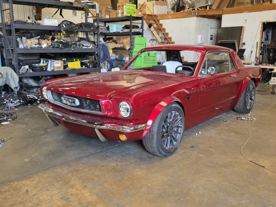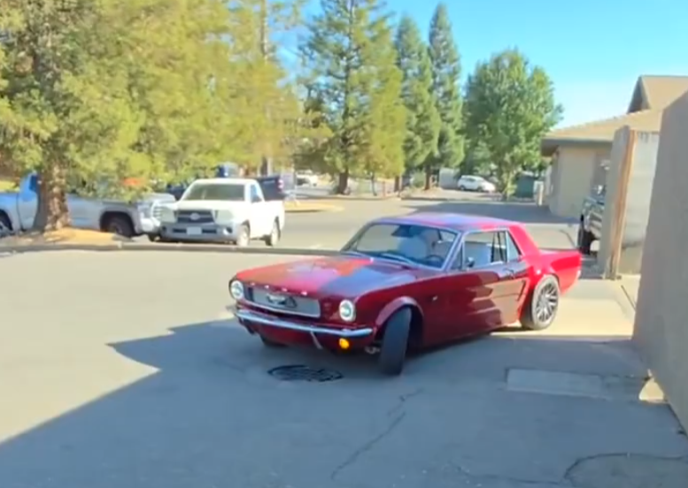 视频中,这辆双门野马轿跑采用了醒目的红色外观,其引擎盖下经过了彻底改造,搭载了特斯拉的全套动力系统以及自动驾驶硬件。