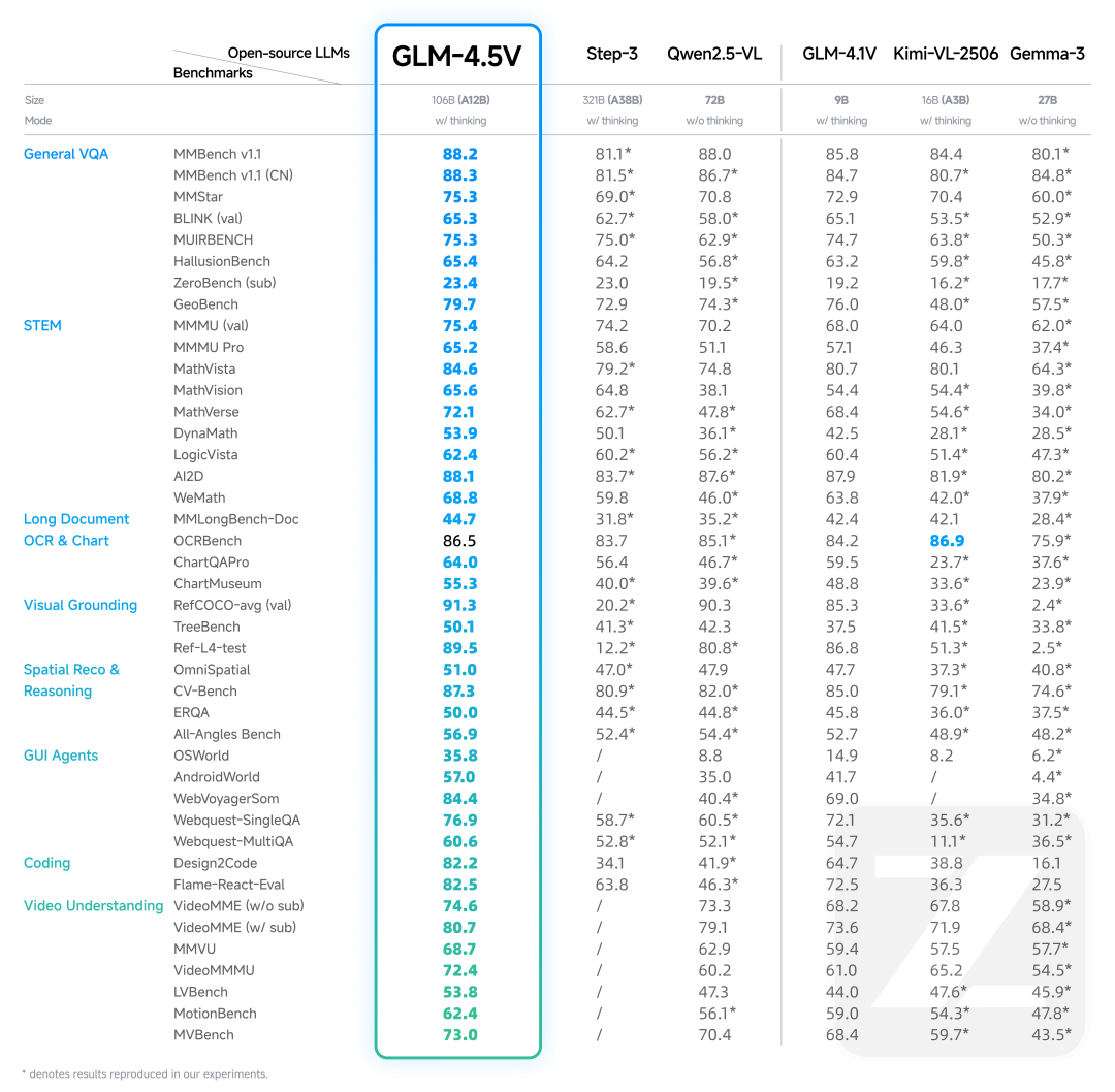 昨日,智谱推出全球 100B 级效果最佳的开源视觉推理模型 GLM-4.5V(总参数 106B,激活参数 12B),并同步在魔搭社区与 Hugging Face 开源。
