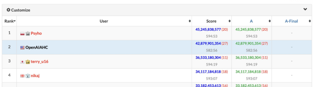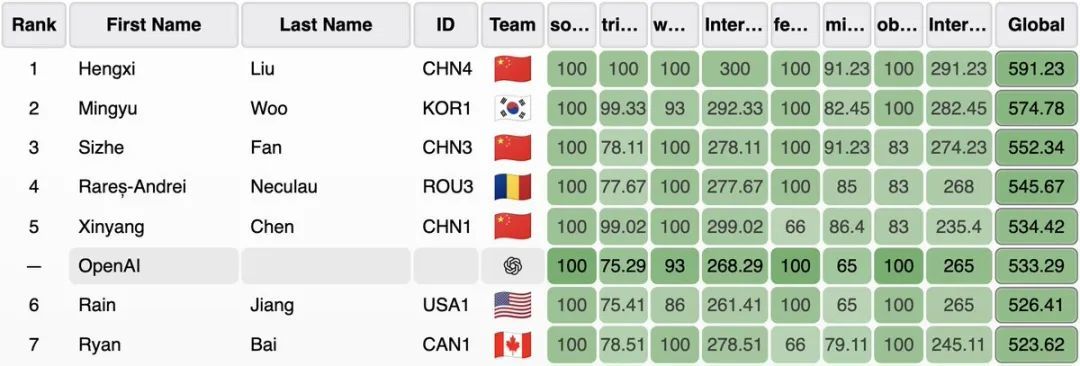 在与全球330名顶尖人类选手的同场竞技中,这套AI系统的成绩超越了其中98%的选手,仅有5位人类天才的得分比它更高