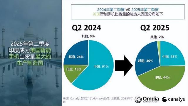 而今年二季度,印度制造似乎也雄起了一把,数据显示,二季度时,美国手机市场印度制造的手机占到了44%,排名第一,而中国制造占比降至25%,可以说是完全被印度制造超过了。