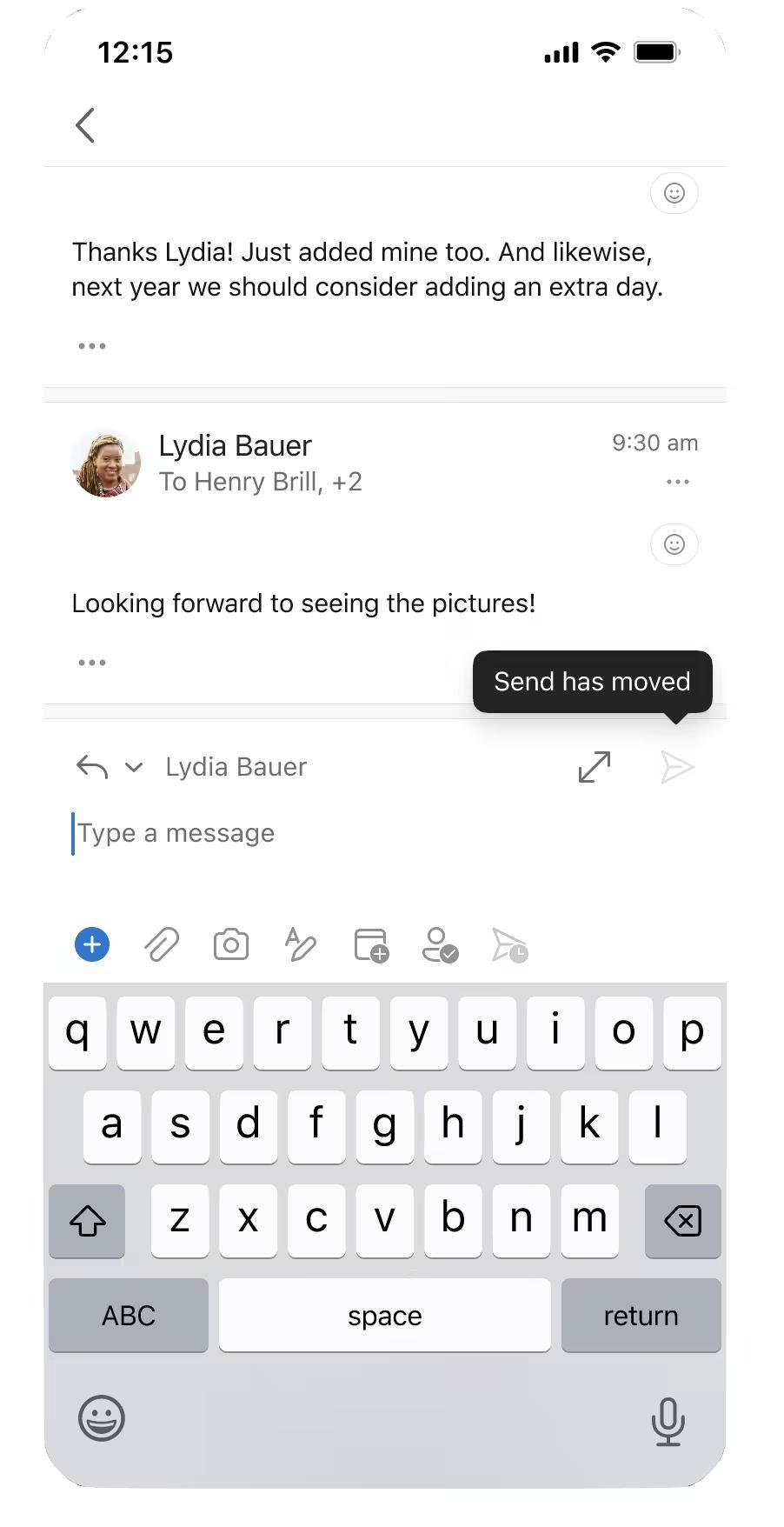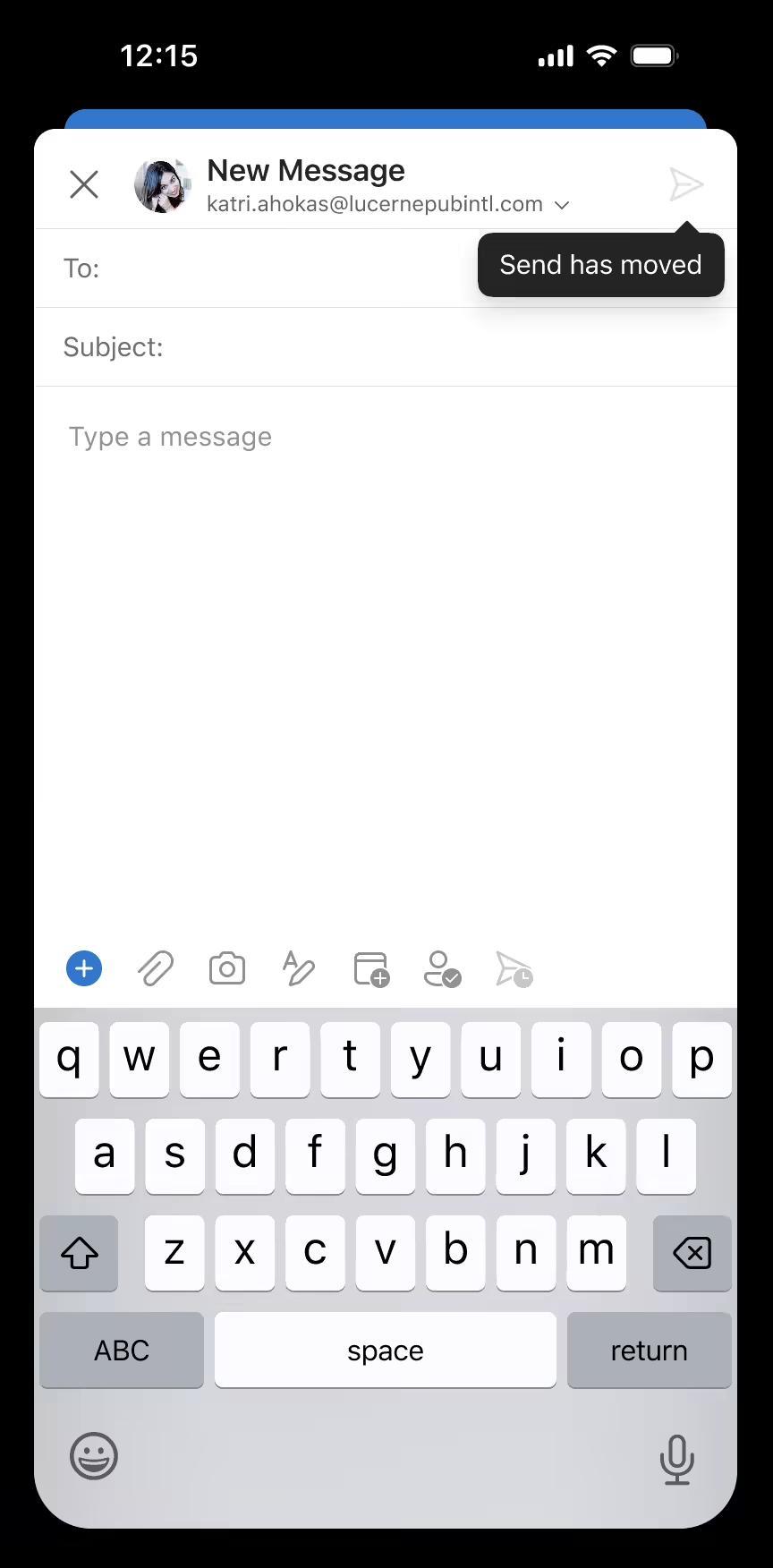 微软为解决上述问题,计划于 2025 年 9 月更新 iOS 和安卓版 Outlook,将“发送”按钮从原本的撰写工具栏底部移至邮件撰写界面顶部。