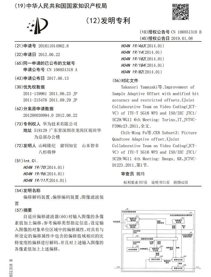 而这次华为提起的诉讼于2025年6月20日正式提交,是华为第二次就知识产权问题起诉传音。这次诉讼的核心,是一项名为“偏移解码装置、偏移编码装置、图像滤波装置”的欧洲专利(EP2725797)。
