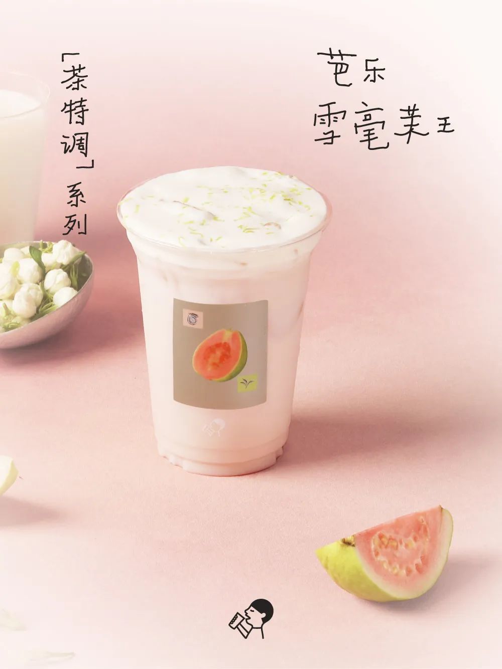 据介绍,芭乐雪毫茉王采用红/白两种芭乐,以每斤茶吸足 5500 朵茉莉的九窨雪毫茉王作为茶底,搭配源牧 3.8 冷藏真牛乳乳底,顶部还拥有「芭乐云顶」。