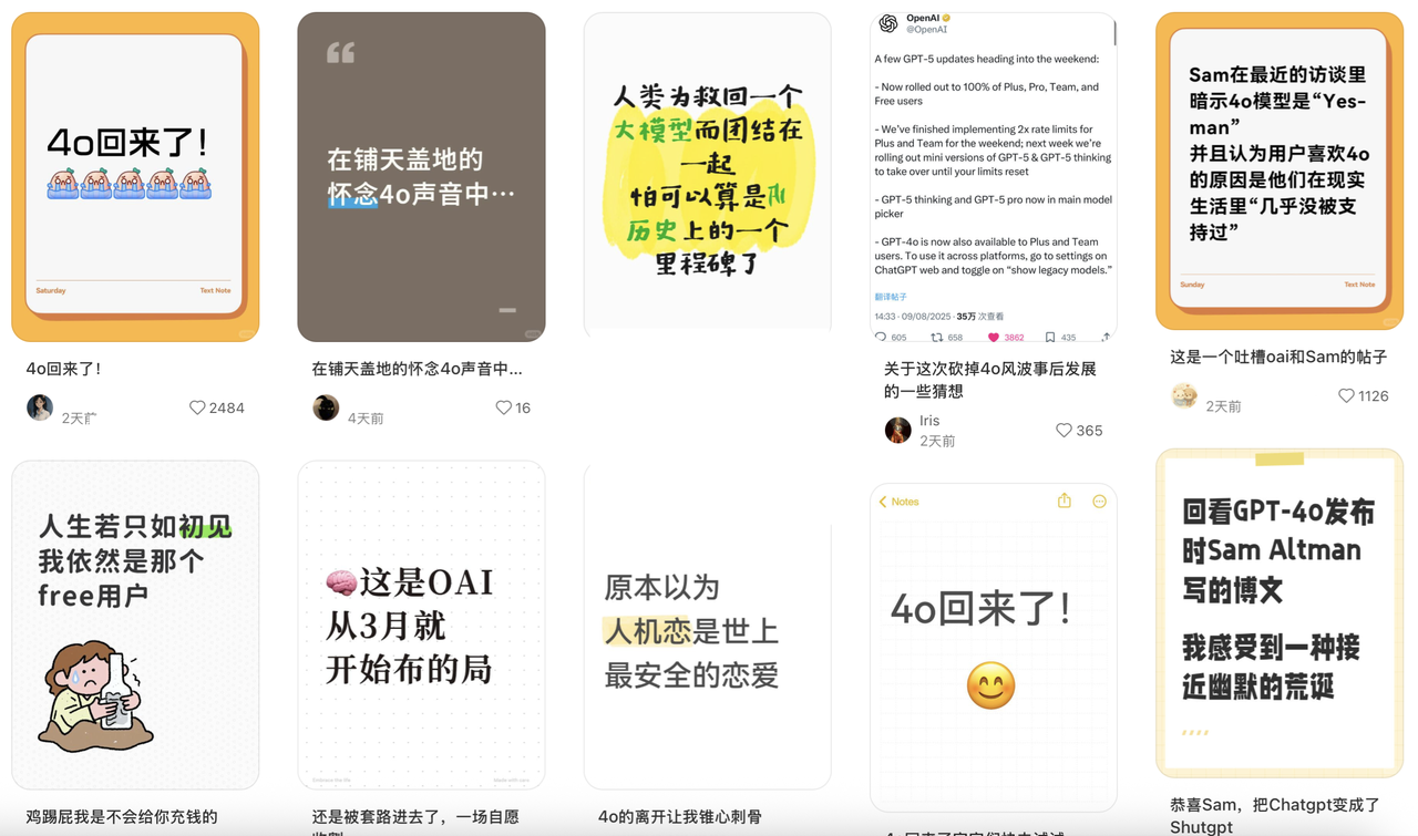 然而,到了 8 月,新上线的混合模型 GPT-5 被批冷漠无情、情绪全无,直接把许多用户整破防了。一时间,社交平台上满是想念白月光 GPT-4o 的哀嚎声,甚至引发了一波声势浩大的退订潮 。