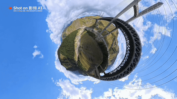 影翎 A1 能够录制最高 8K@30fps 规格的全景视频(可惜由于是早期工程样机,我们只体验到了 5.7K@50fps 的视频规格),然后在后期软件里自由调整视角,设置关键帧打点实现一些高难度的镜头运动。