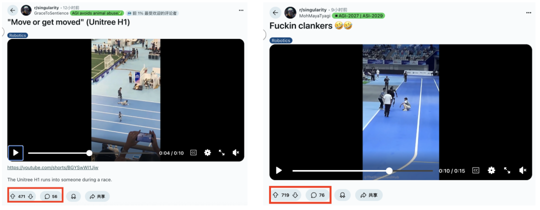 现在,机器人正常走路、跑步,关注比较少。但是如果机器人因为操作或者某种原因出点问题,讨论就会爆多。
