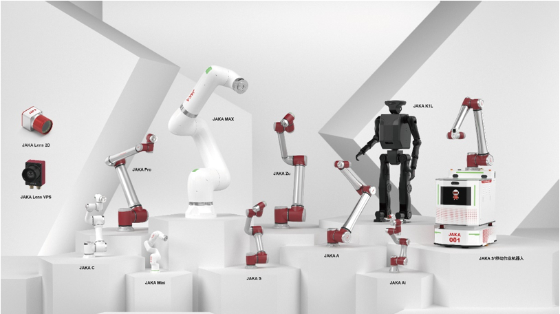 在成熟的工业机器人赛道,推陈出新是企业保持竞争力的关键。在具身智能这一前沿领域,节卡机器人也是协作厂商中较早研发人形双臂机器人的企业。依托自身在机器人本体上的关节一体化和产业化优势,以及软硬件、算法整合能力,先后推出了具身智能家族,包括节卡S³复合机器人、双臂人形JAKA K1、足式人形JAKA K1L,轮式人形JAKA K1W和具身平台JAKA Lumi,覆盖即时数采、模型训练、商用场景、非结构化工业环境到移动作业场景。2024年,JAKA K系列产品已实现300多台的小规模商用落地,涉及科研教学、数采训练、柔性智造等领域,目前也已与部分汽车产业链企业就人形机器人应用展开场景测试与验证,探索机器人在真实场景下的工艺融合、场景适配和长期应用能力,让技术成果转化为产业价值。