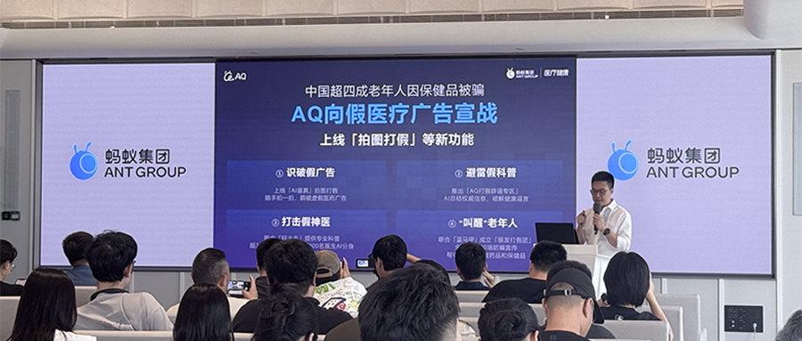 蚂蚁集团副总裁、医疗健康事业部总经理张俊杰说:“从过去支付宝用移动支付让「天下无贼」,到芝麻信用致力于「消灭押金」,再到AI时代AQ承载了蚂蚁的新使命:用AI科技消灭假医疗广告,也让每个人看病更简单,生活更健康。”