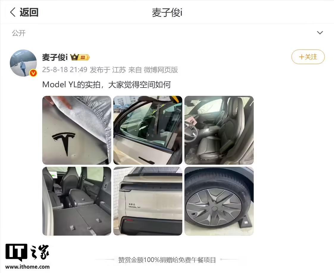 IT之家 8 月 19 日消息,在特斯拉昨日(8 月 18 日)官宣 Model Y L 车型即将登场后,网络流出了该新款汽车的内饰图片,包括首搭黑色顶棚、升级前排座椅、第二排独立“船长座”、三排座椅均支持电动折叠等。