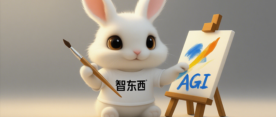 当我进一步要求“为小兔子穿上写着‘智东西’的短袖,画板上写上‘AGI’”,Qwen-Image-Edit也能够准确生成,而且画板上的文字与原本的画作风格一致,其他的元素没有发生变化。