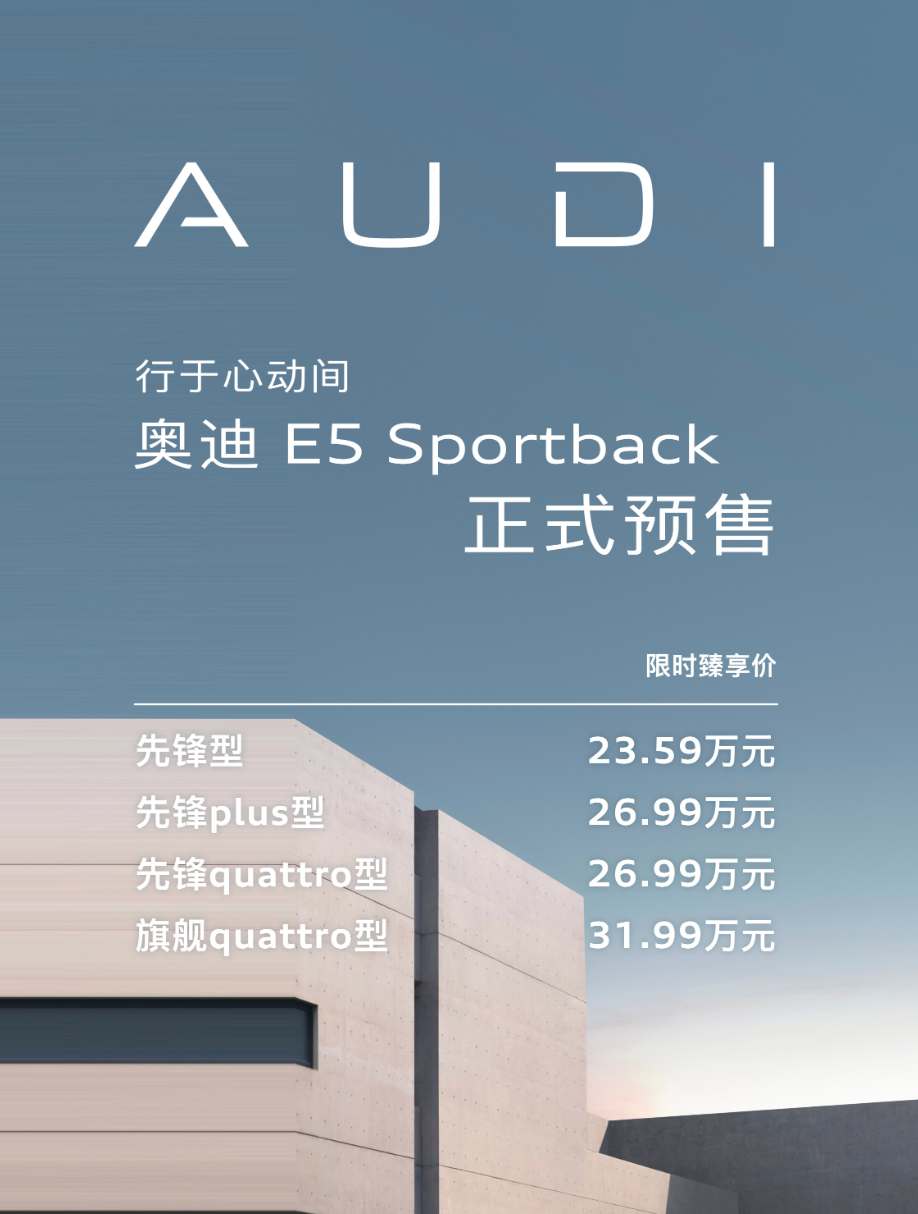 而到了今日这台预售价格 23.59 万元起的 AUDI E5 sportback 发布时,我虽然不至于有上面那位粉丝的破碎心情,但脑子里却也有两个小人在打架,左边一个告诉我说「不管怎么样,奥迪破釜沉舟的勇气直接敬佩,对于一家近百年历史的跨国企业来说,这也算得上难得的突破性举动」,右边一个则更加直接「这车上下哪里有一丝一毫的奥迪味吗?杂牌电动车罢了,换壳智己都算不上,最多是个换壳飞凡」。