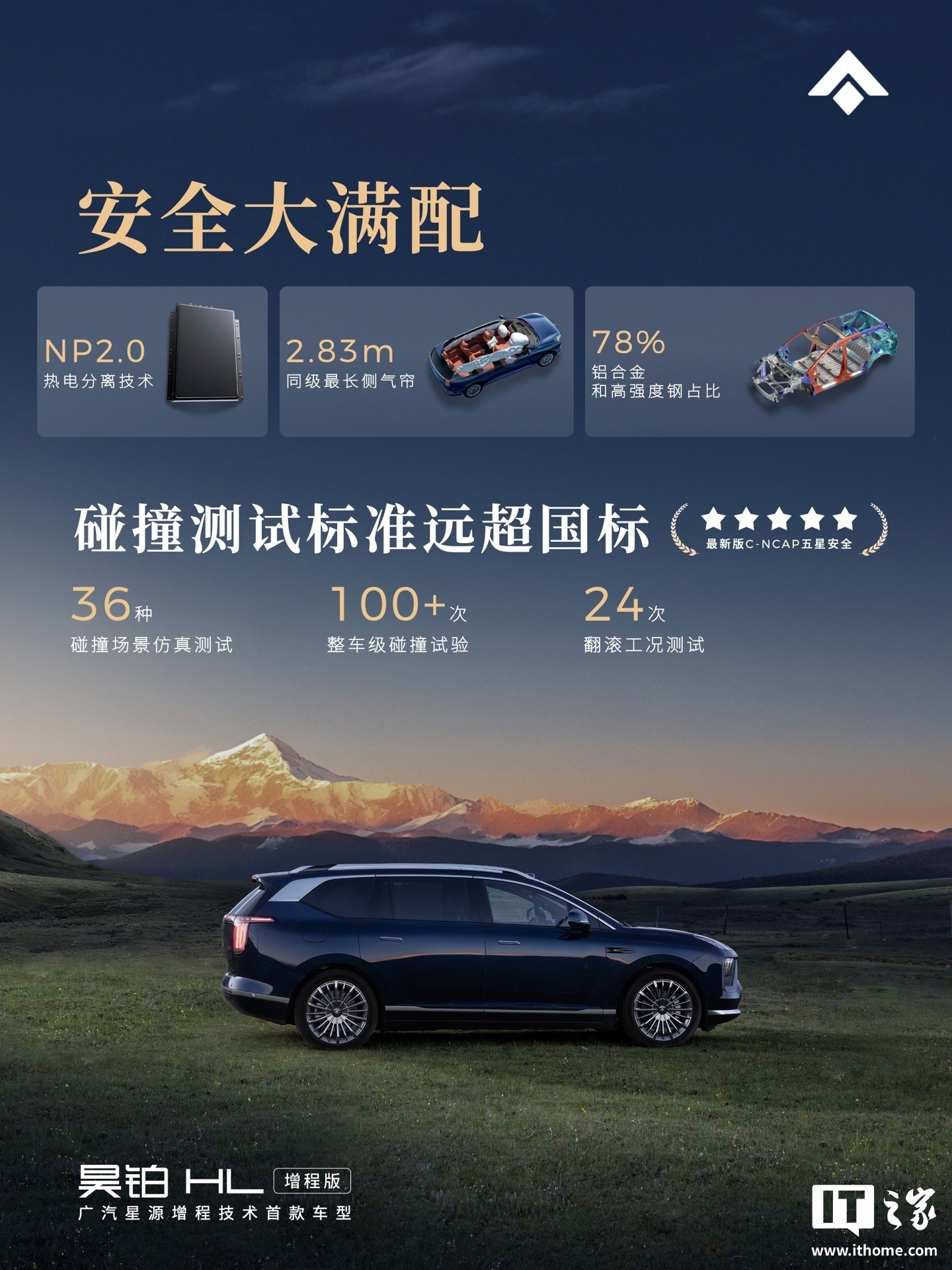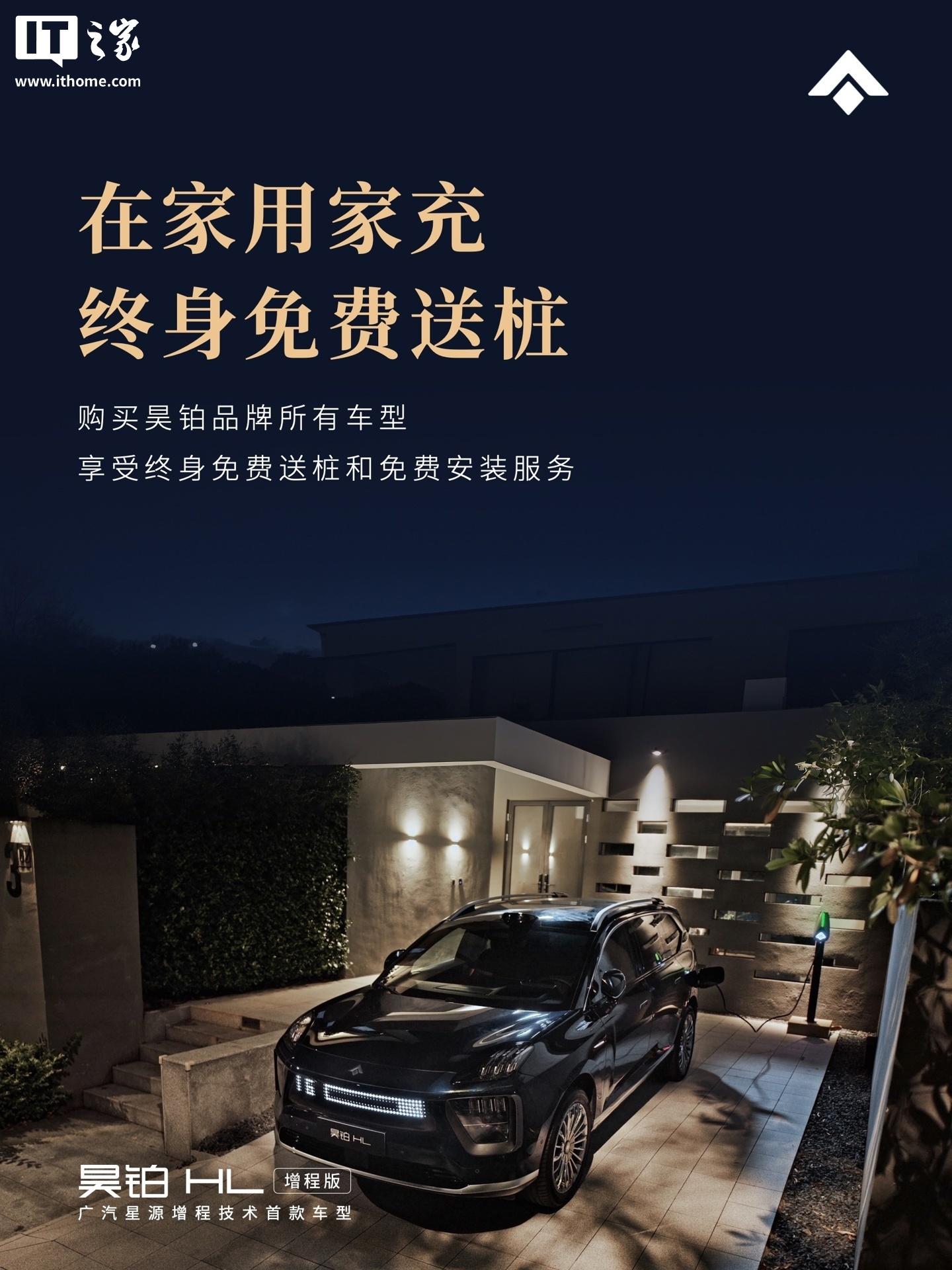 昊铂 HL 增程版新车采用纯电车同源的顶级三电技术,800V 高压 + 5C 超快充,10 分钟续航 210 公里;广汽已与蔚来、极氪形成互联互通合作,除了品牌自身的自建桩,车主可享受免费充电权益;购买昊铂品牌所有车型,都享免费送桩和安装服务,并为用户永久保留这一权益,不会因为用户暂时没有安装条件而过期。
