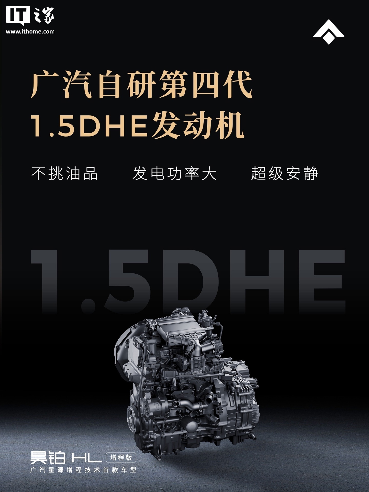 广汽昊铂 HL 增程版汽车还搭载广汽自研的第四代 1.5DHE 发动机,不挑油品,92 和 95 的油都能加;新车还支持 70 千瓦持续发电功率,并采用行业领先降噪技术,号称“如纯电般静谧体验”。