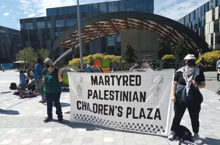 抗议者表示已将该广场名称从东校区广场改为“殉难巴勒斯坦儿童广场”,以表达他们对微软与以色列军方合作的强烈不满。此次抗议活动是“反对 Azure 用于种族隔离”运动的一部分,该运动由“反对技术用于种族隔离”组织的微软分支发起。