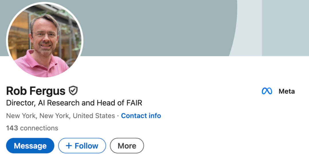 Robert Fergus(FAIR联合创始人)将继续领导研究实验室,他刚从谷歌DeepMind重新回来Meta。