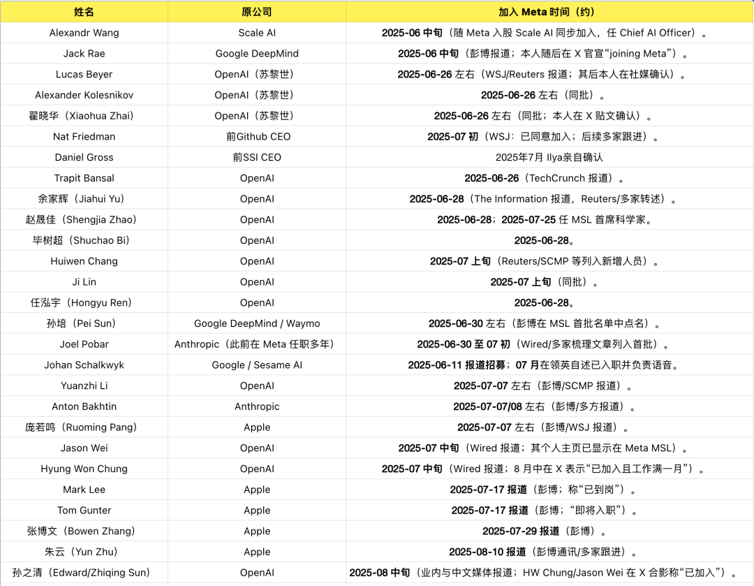 最后附上扎克伯格最近从各个地方挖到的核心人员名单和大概加入时间。