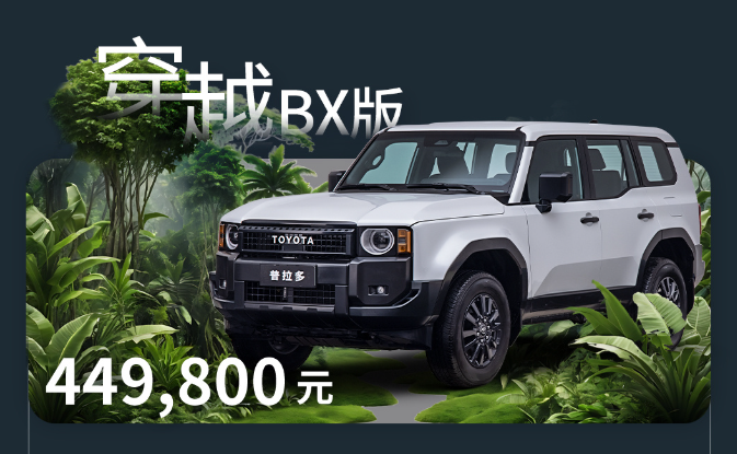 一汽丰田全新普拉多于今年 2 月上市,官方指导价 44.98 万-55.98 万元。该车搭载 2.4T 涡轮增压四缸发动机 + 电动机组成的混动系统,系统综合功率为 330 马力,最大扭矩为 630 牛・米,传动系统匹配 8 速自动变速箱以及全时四驱系统。