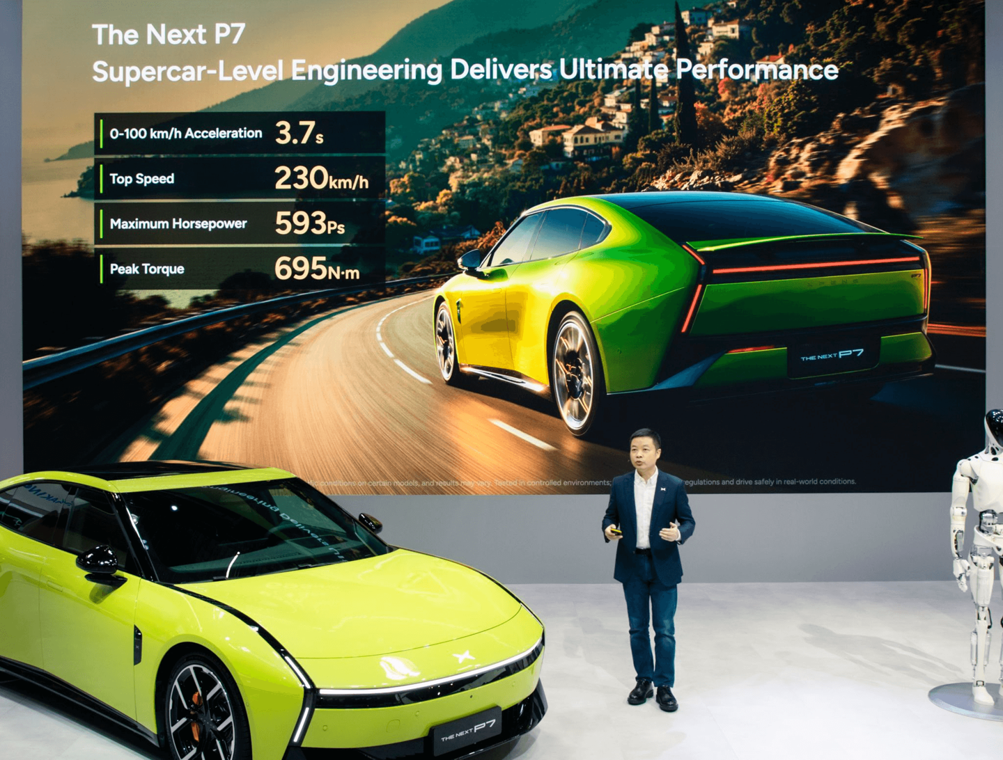 后续何小鹏分享了公司的最新技术、产品阵容,提及全新小鹏 P7、IRON 人形机器人。