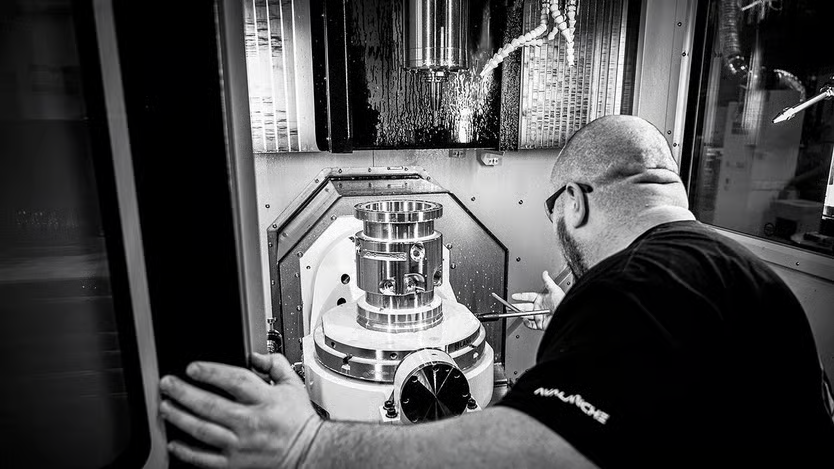 机械师正在从 Avalanche Energy 的铣床上拆除新制造的紧凑型聚变室