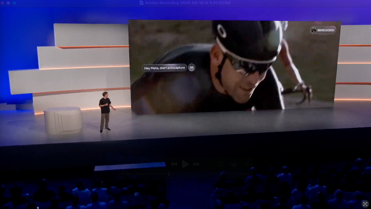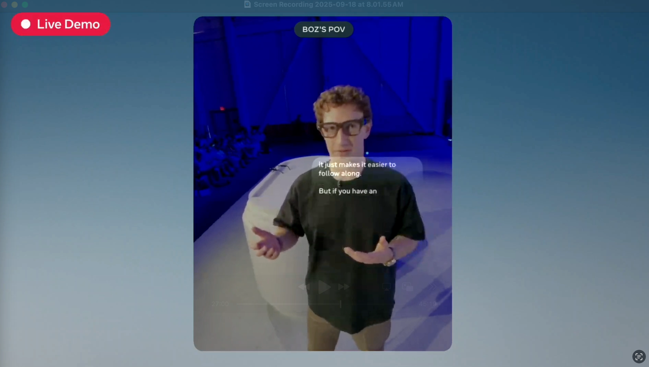 Meta 的 Live AI 模型也相应得到了增强,不仅仅是视觉识别,现在它也支持了用户主动打断对话——只可惜,发布会上面的现场演示还是翻了车,Live AI 助手卡在了一句循环的对话上,没能完成一个完整的对话 session。